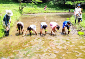 地域の学習塾の5年生の子どもたちが田植えの手伝いに来てくれた。泥田になんか踏み込んだことのない子どもたちが嬉々として田んぼに降りて、一線に並んで楽し気に苗を植えてくれた。今年の実りはきっと豊作になるだろう。