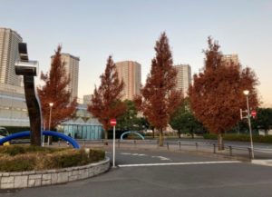このメタセコイアは毎朝体操している人や通勤者を見守るように立っているのですが、最初のころは「あまり見たことのない木だなー」程度で気になりませんでした。それが今月末の急激な冷え込みで紅葉してきたのです。毎日のように見ているメタセコイアですが初冬の、紅葉している姿はひときわ目を引きました。